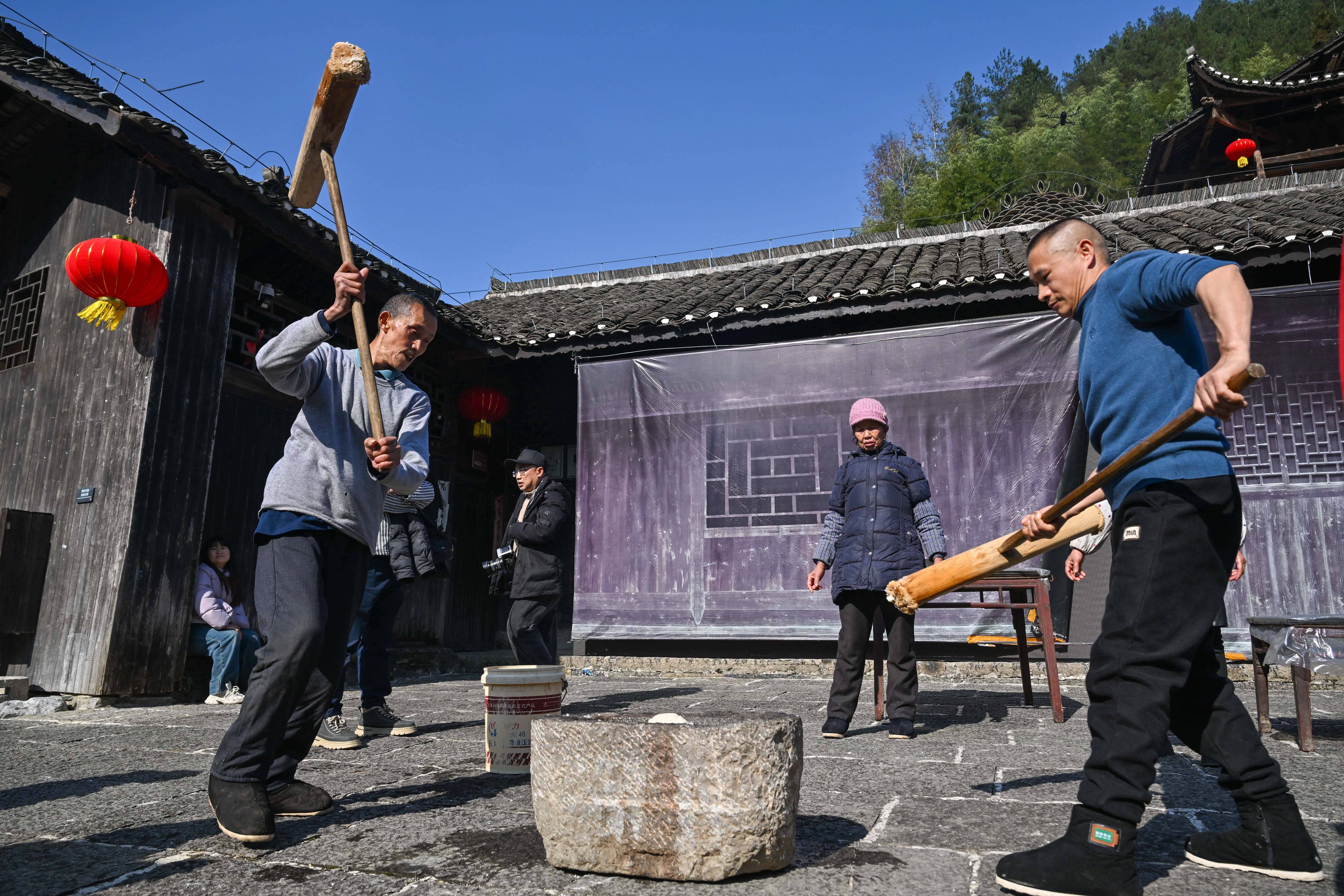 村民在打糍粑。新华社发(陈绪开 摄)时至中午,村内搭客迟缓多了起来。阳光透过窗户,被屋内的烟气分割成一条条光束。土家古村传承千百年、滋养东谈主心的诀要,也许就在这疲塌的“人烟气”中。