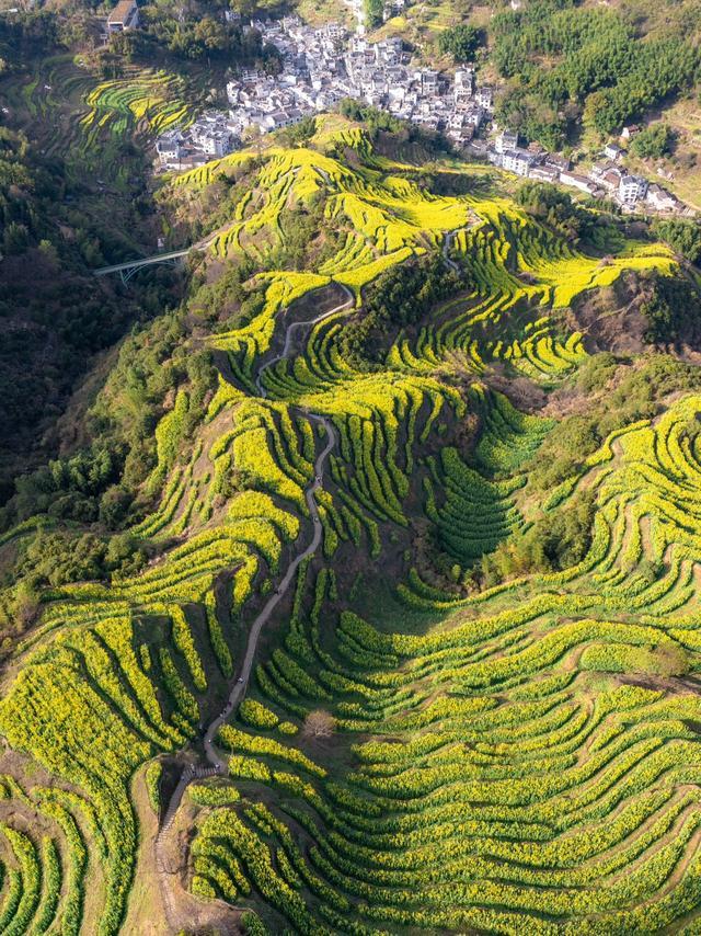 众东说念主皆说念油菜花常见,可婺源的油菜花,却生得卓尔不群。它不似平原那般一览无余,而是顺着转念的山峦,重重叠叠地铺陈开来,与粉墙黛瓦的徽派民居相依相偎。