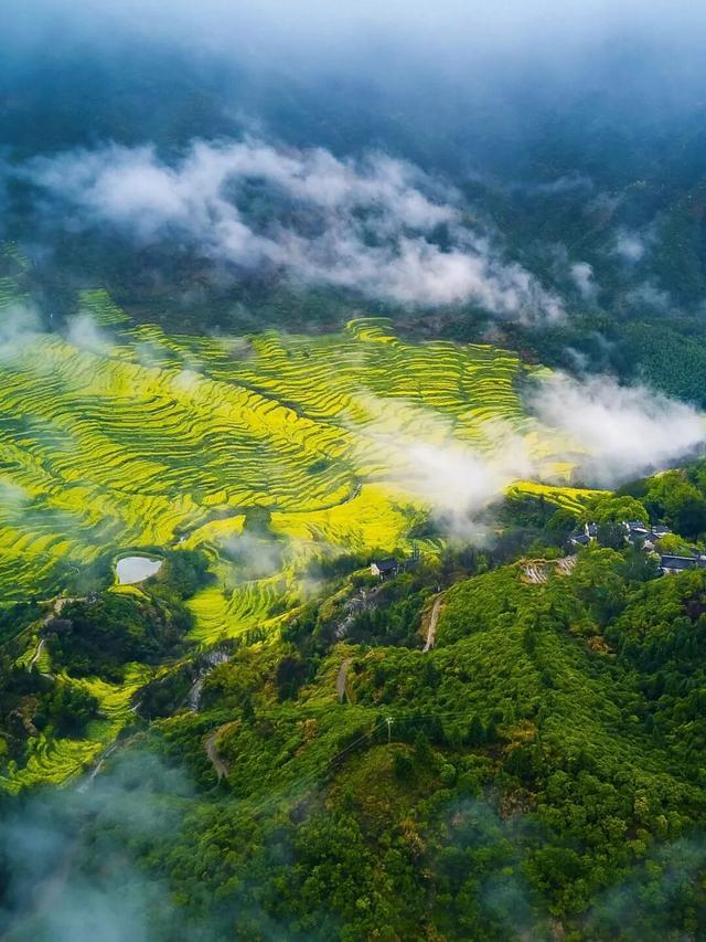 三月下旬至四月初,恰是花开得最鼎力、最烂漫的时节。金黄的花浪从山脚一齐翻涌至山腰,陈腐的村庄便如一叶扁舟,欢欣飞舞在这片金色的海洋里。这般景致,是独属于江西的诗画,是别处寻不来的惊艳。