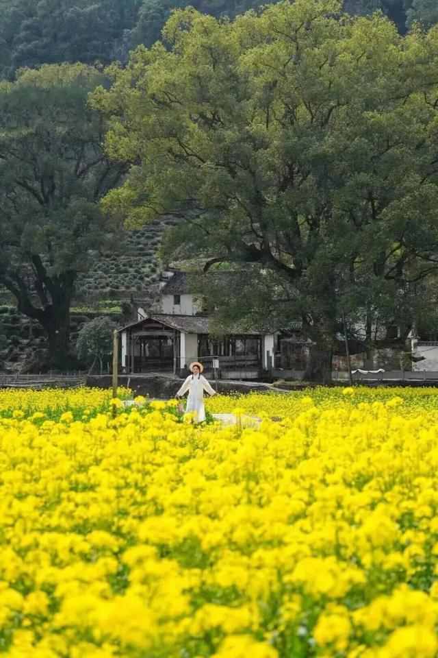 步入村中,一场对于春天的视觉盛宴才刚刚驱动。爱好意思的你,不妨换上满意的穿戴,在晒秋的晒台上,在古巷的石板路上,在花田的阡陌间,留住最动东说念主的身姿。