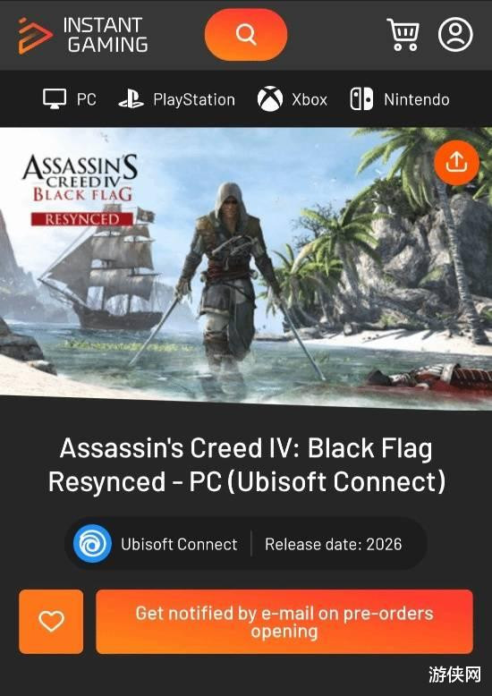 近日,有网友发现部分线上零卖商已提前上架《刺客信条 4:黑旗 重制版》的PC版块商品页面,信息线路该作将通过育碧自家平台Ubisoft Connect刊行,发售期间标注为2026年,并已绽放“预购指示”功能。